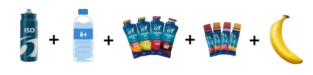 Partie vélo : Eau, Iso, Banane, Gel, Pate de fruit